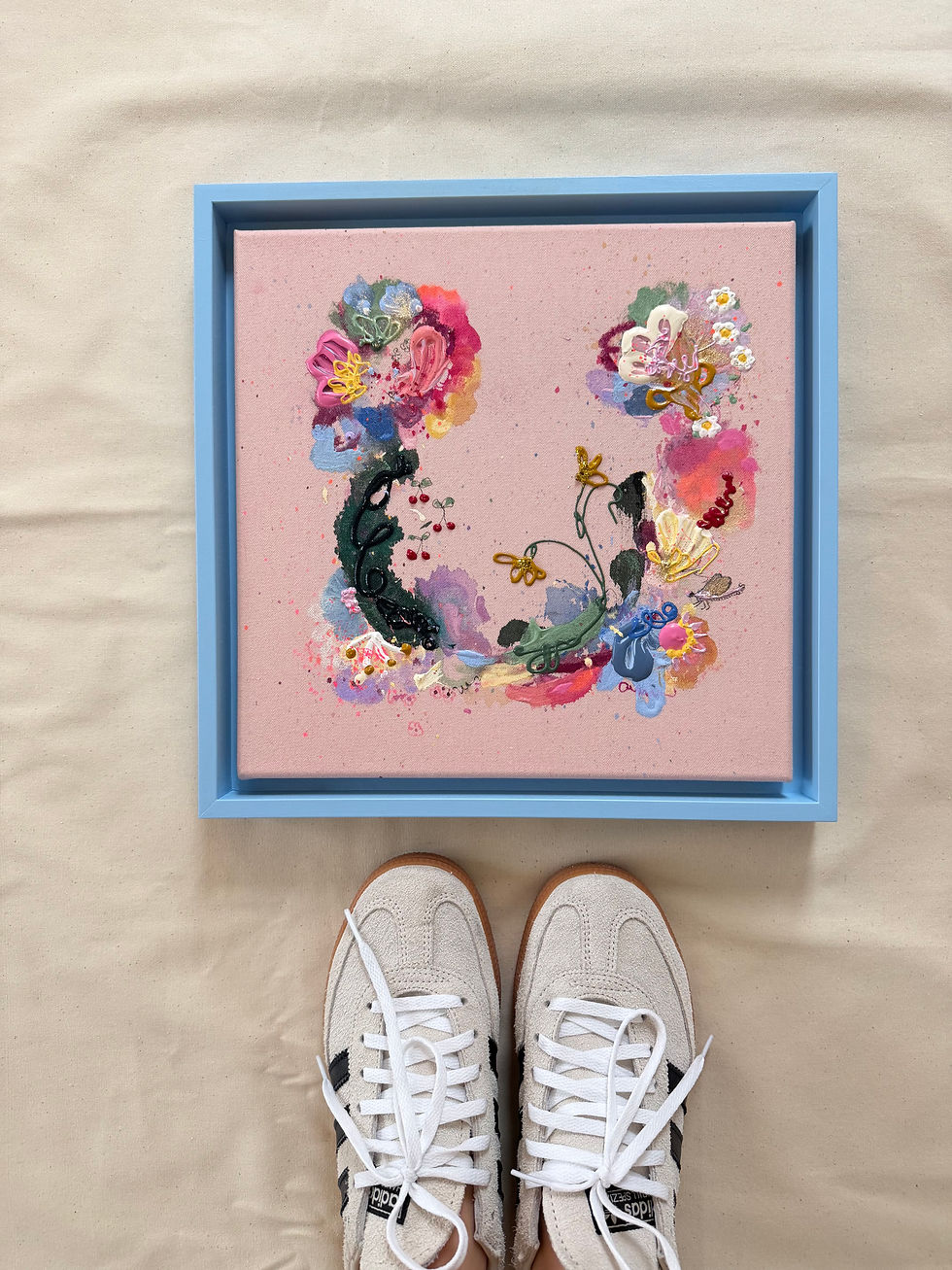 Frühlingsgefühle 5, 50x50cm im Schattenfugenrahmen hellblau
